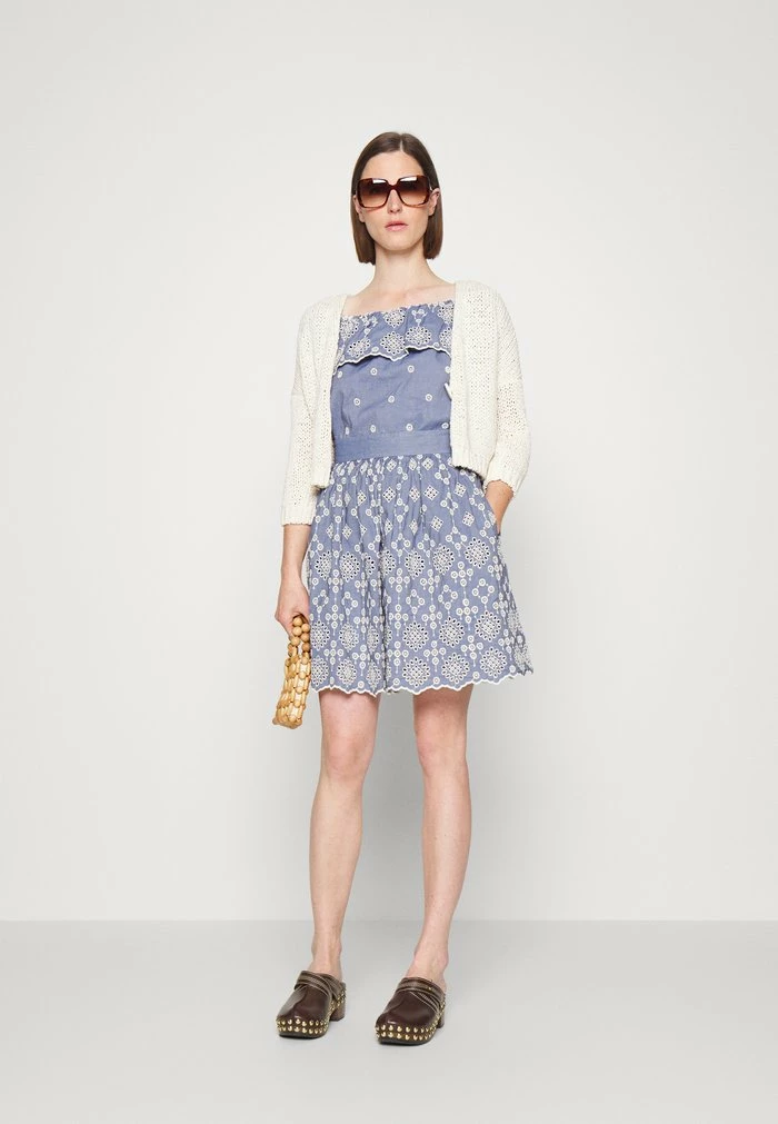 - Details: Inseam pockets, underskirt, embroidery