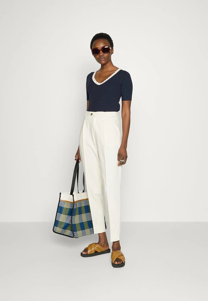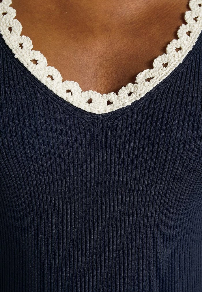- Neckline: Low-cut v-neck